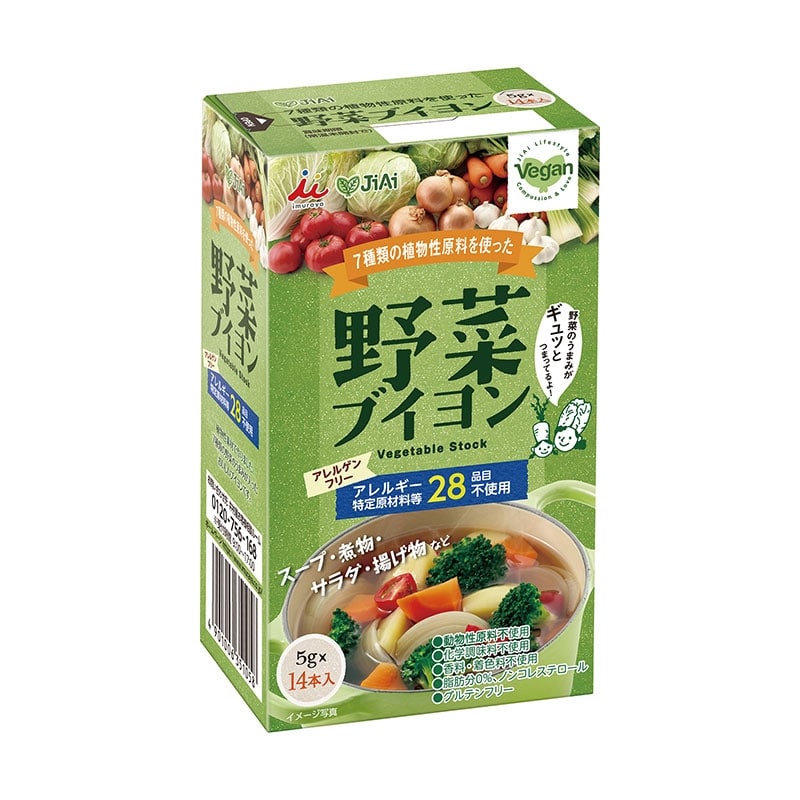 化学調味料・香料・着色料・動物性原料不使用。7種類の野菜の旨みがギュッとつまったブイヨンです。